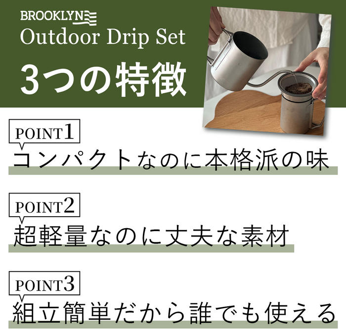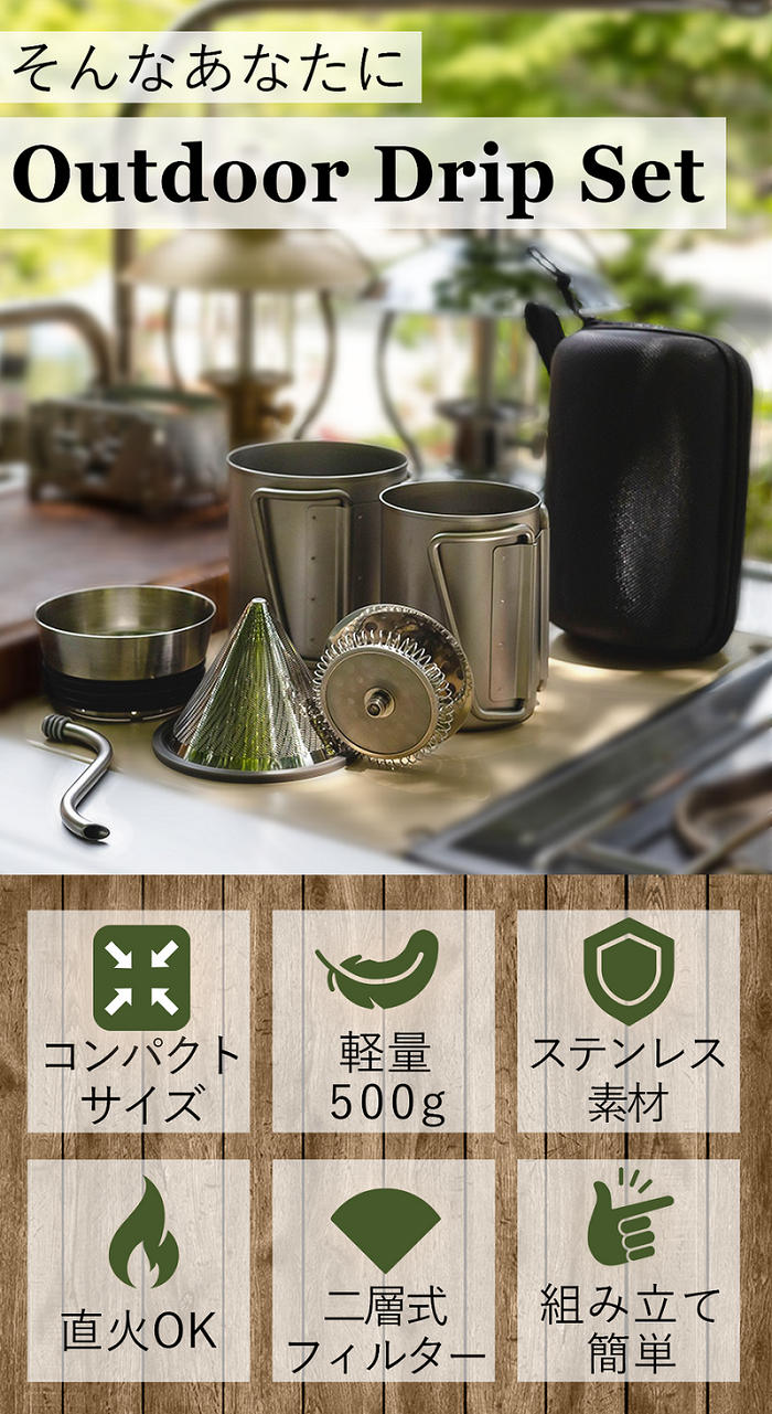 - 軽くてコンパクトなOutdoor Drip Set!