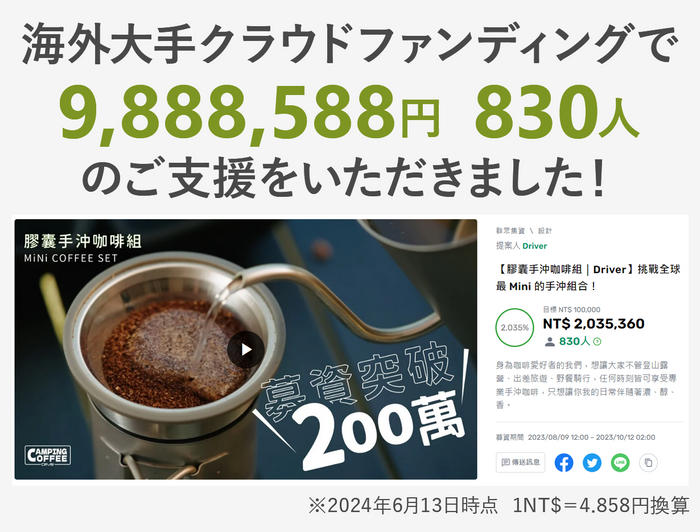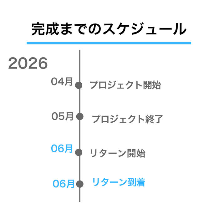 ※本文中に記載させていただいたスケジュールは、あくまでプロジェクト公開時点の予定です。クラウドファンディングを経て輸入を行う性質上、配送遅延のおそれがございます。