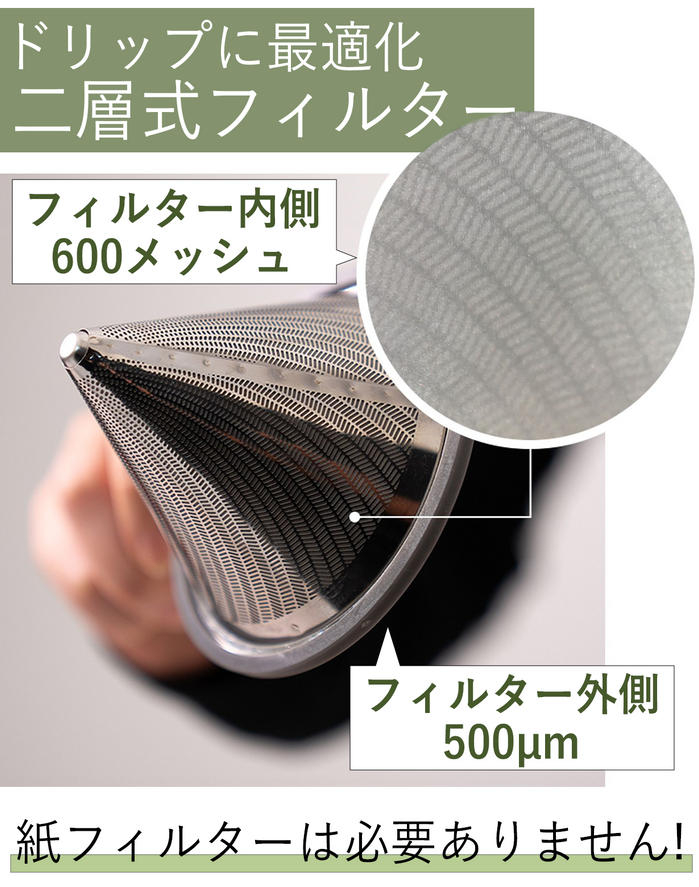 - コーヒー本来の風味を楽しめる二層式フィルターを採用!
