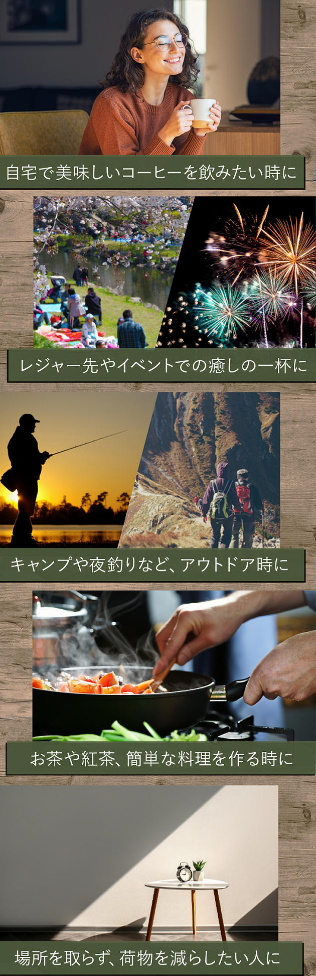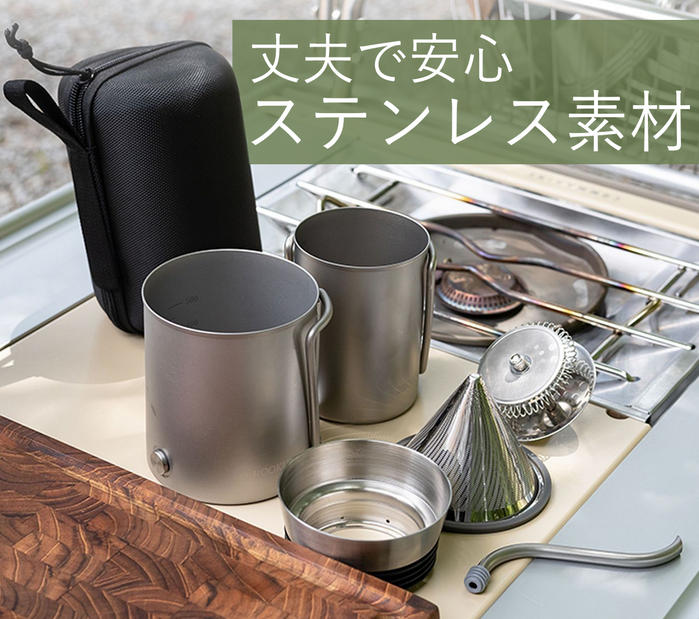 ステンレスは耐熱性があり、錆に強く清潔な、とても丈夫な素材だから、どこでも最高のコーヒーが楽しめます! -