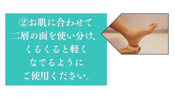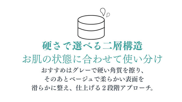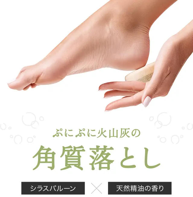 - 火山灰を使った、「ぷに・ザラ・つるん」の三段階感触が楽しめる、新感覚の角質落としです。