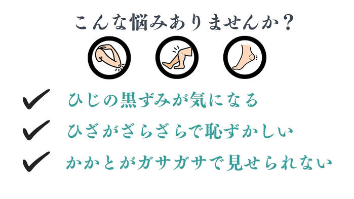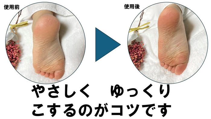 ・かかと・ひじ・ひざ以外へのご使用はおやめください。