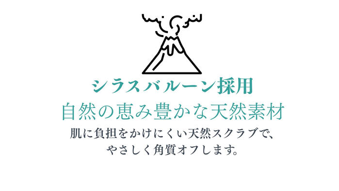 古い角質と汚れだけを絡めとり、つるんと、なめらかな肌へ導く!火山灰を使った、新感覚の角質落としです。 -