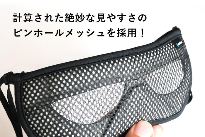 さらにこの立体構造により目とメッシュの間に適度な空間ができることで、まばたきなどの目の動きに干渉しない快適さを作り出します。 -