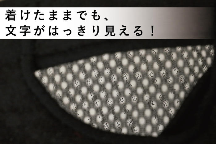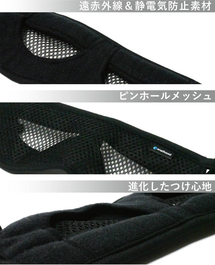 - 目に入ってくる光を抑えながら色や文字が鮮明に見えるピンホールメッシュと、目の周りを優しくカバーする蓄熱保温&静電気防止素材「サーモトロン」×「メガーナ」により目の周りをじわーっと快適にウォーミング!