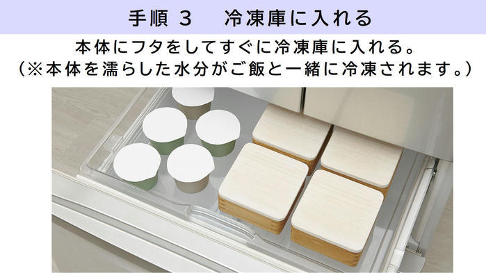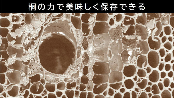 また湿気や水分が多い時は、この導管の独立構造に湿気を吸収、逆に乾燥している時は湿気を放出。適度な湿度や水分量を保つ湿度調節機能。天然の桐の力で湿度調節、水分調節を行い、冷凍ご飯を美味しいコンディションに保ってくれます。 -