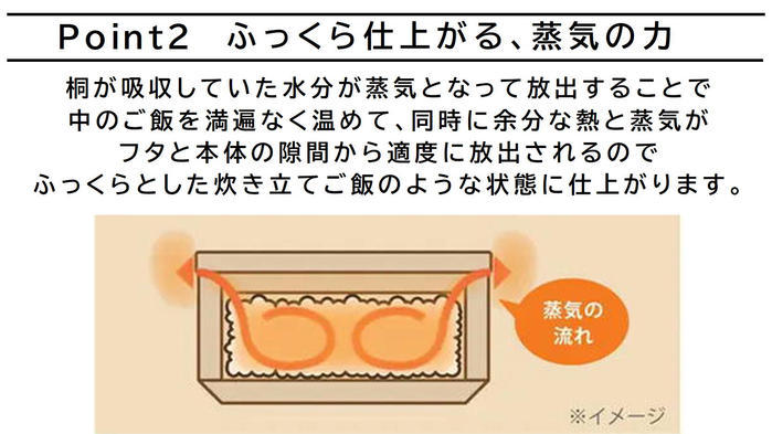 桐は熱が伝わりにくい!本体が熱くなりにくいからレンジから取り出しやすく、しかも中のご飯も冷めにくい!こちらも皆様へお伝えしたい桐の魅力の1つです。