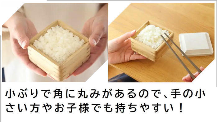 小サイズは一膳では少し多い方やお子様向けに丁度なサイズ。約120gのごはんが入ります。