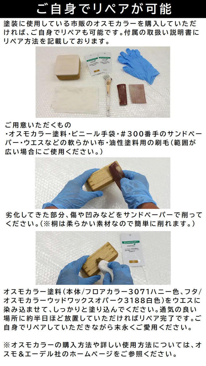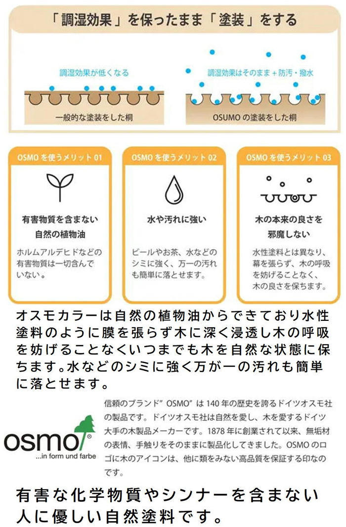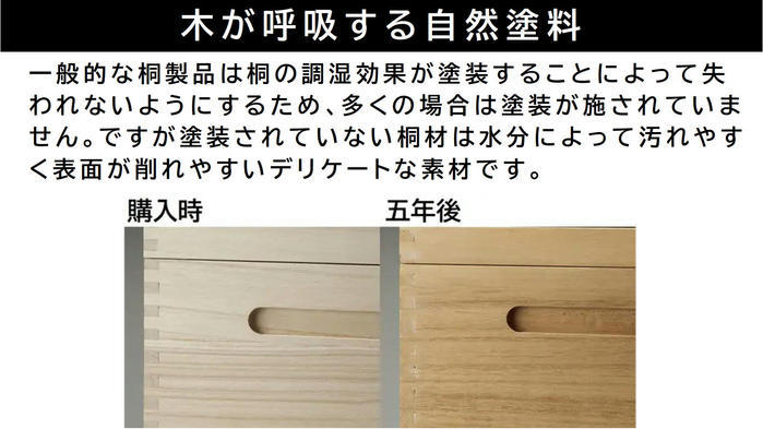 桐の調湿効果や呼吸はそのままに、水洗いができる自然塗料を使用!