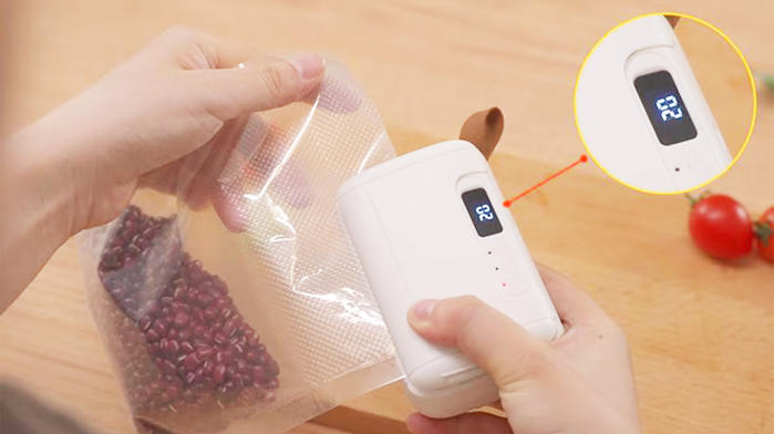 - Sealer Vacuum 2.0はサイズ100x60x50mm、重さはわずか217g。これは一般的な真空パック機の約1/10のサイズです。