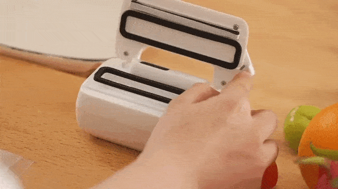 - Sealer+Vacuum 2.0は電源ボタンを押し、袋を挟むだけで簡単に真空パックが完成!