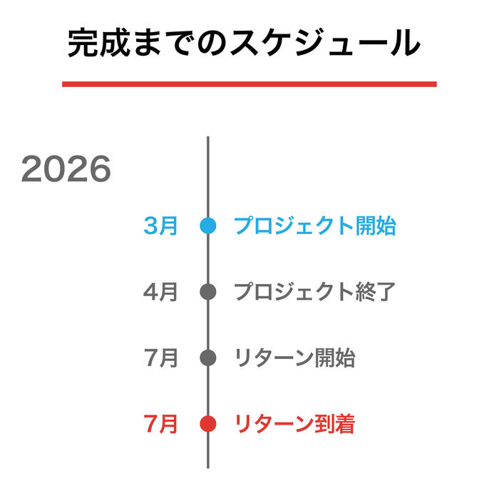 ※支援の数が想定を上回った場合、製造工程上の都合等により出荷時期が遅れる場合がございます。配送に遅れが生じる可能性が判明した場合、直ちに「活動レポート」でご報告いたします。