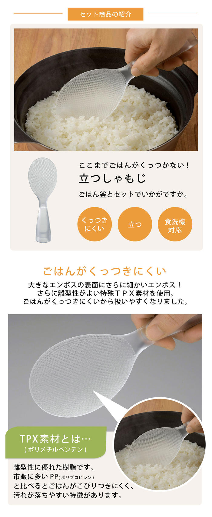 ごはんがくっつかないように、水をつけてから使用してください。