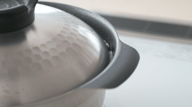 調理中、調理直後は取っ手やツマミが熱くなっていますので鍋つかみを使用してください。