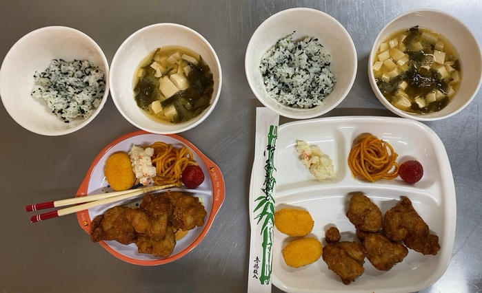 唐揚げやハンバーグ、コロッケなどの定食を中心として、栄養の偏りを避けて、子どもたちが食べやすいものを中心としたメニューを提供しています。 -