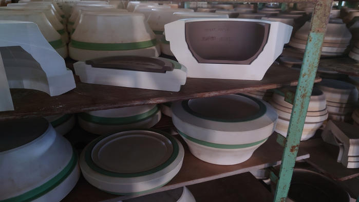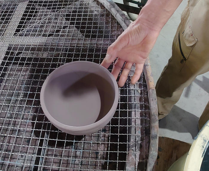 - 「Hangout Solt pot(塩壺)」は型を使いおおよそ形状を作成した後、職人の手作業により形の調整(ケズリ作業など)によって仕上げています。この工程により、人の手でつくる暖かみを感じられる商品になっています。